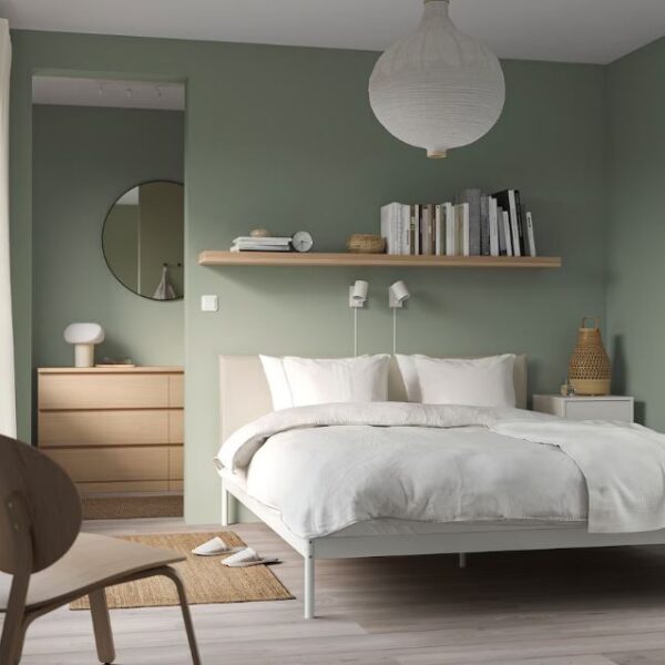 KLEPPSTAD Bed frame white Vissle beige