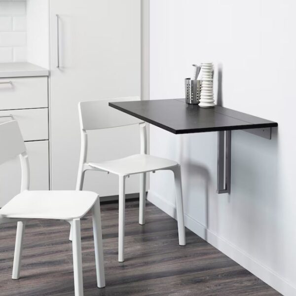 Wall-mounted drop-leaf table, brown-black