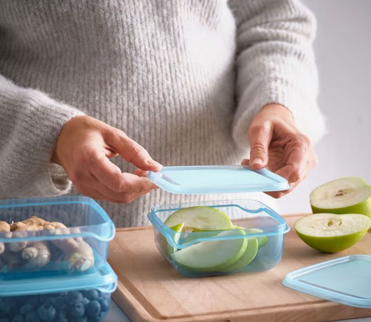 Practical and colourful food storage! PRUTA food containers with lids help you store everything from cold cuts to sliced fruit ─ and are the perfect size for one portion, helping reduce food waste at home.