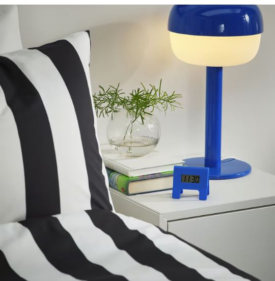 KUPONG is a small and neat alarm clock in bright blue – easy to find a spot for it on the bedside table or bring with you on trips.
