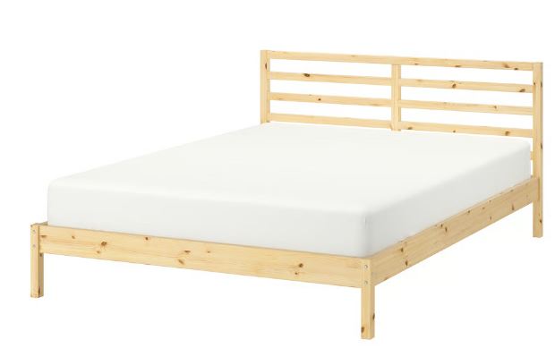 TARVA bed frame has a simple design in white-stained pine – a timeless look that goes nicely with many styles and furniture. Add some pillows and lean against the headboard while reading or watching TV.