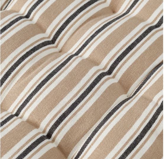 With comfy VATTENMOTT chair cushion, you are in for a soft landing. Identical beige stripe pattern on both sides so you can flip the cushion over for even wear. Easy to coordinate.