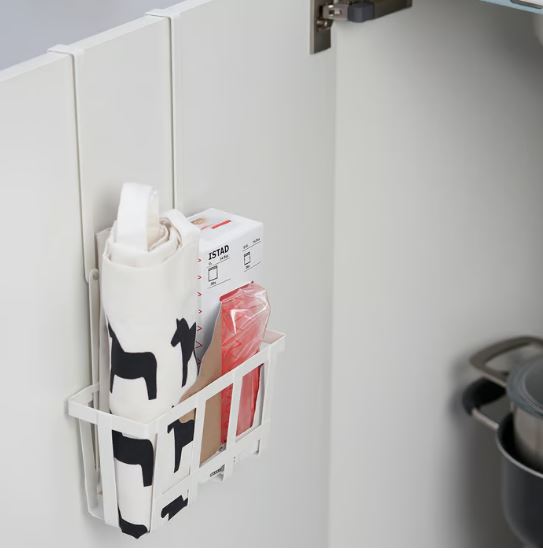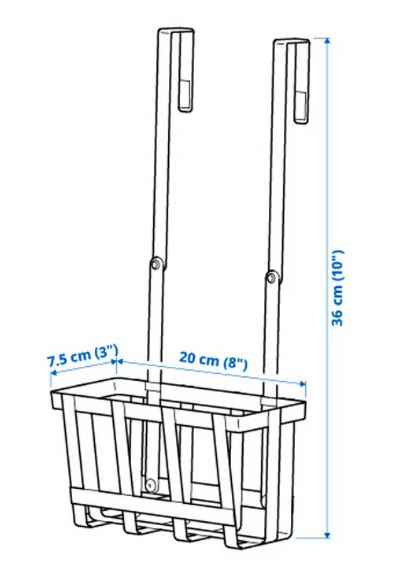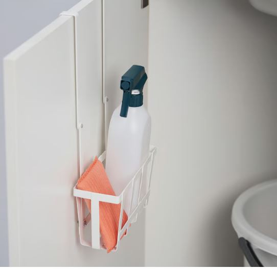 This basket is simple to fix over the door under the sink bowl to avoid having bottles and rags lying on the kitchen worktop. Part of the PÅLYCKE series that helps you utilise every centimetre for storage.