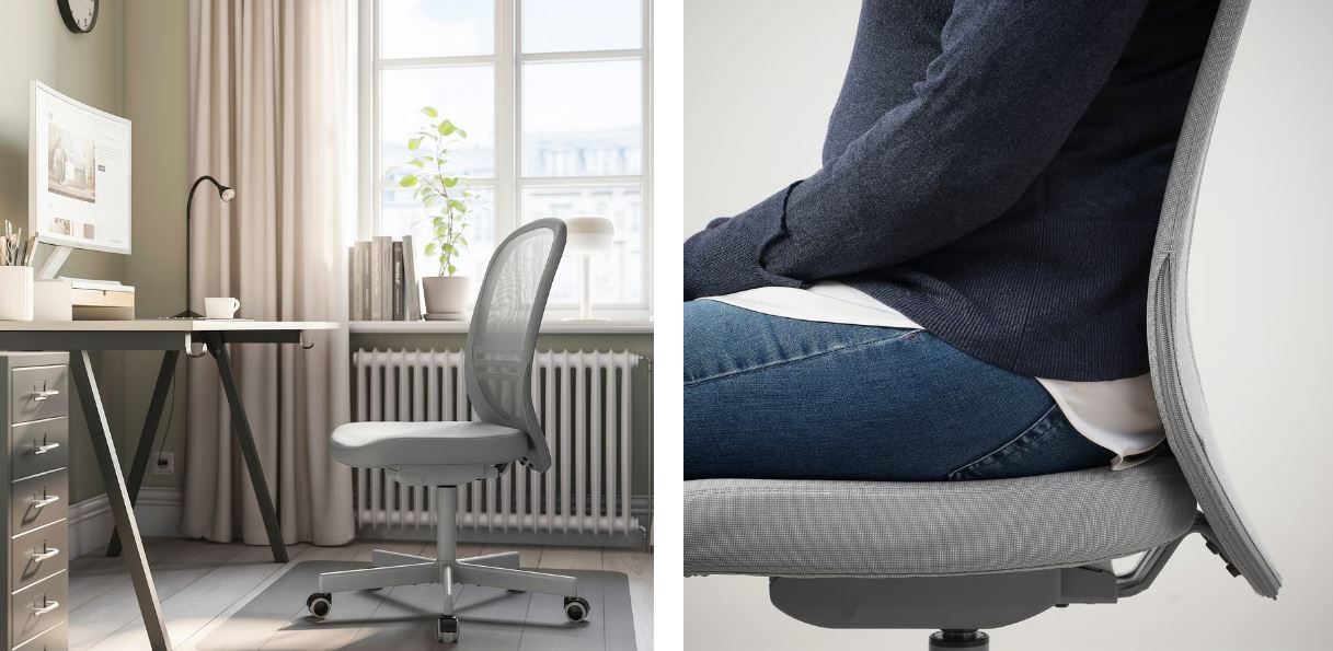 This ergonomic office chair keeps you comfy and focused with a high backrest that provides good support, made with airy mesh so you stay cool. The seat cover is removable and washable. 10 year guarantee.