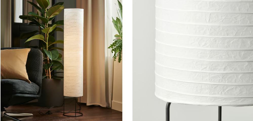 STRANDAD floor lamp spreads a soft, diffused light through its rice paper shade. Its round metal base takes up little room, making it easy to place. Complete with the table lamp from the same series.