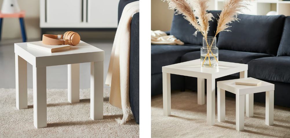 You can use the table on its own or use it as a nesting table by sliding it under the larger LACK table measuring 55×55 cm, for example to save space when it´s not in use.
