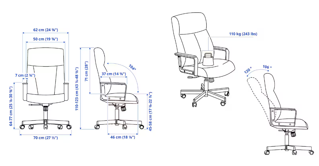 MILLBERGET swivel chair offers comfort and function when you’re working at the desk. It’s also elegant, generous and blends easily with your living room or bedroom decor.