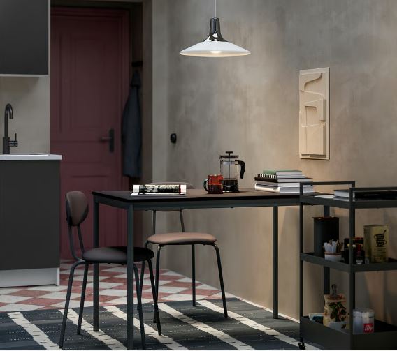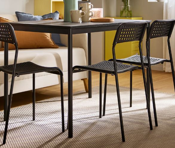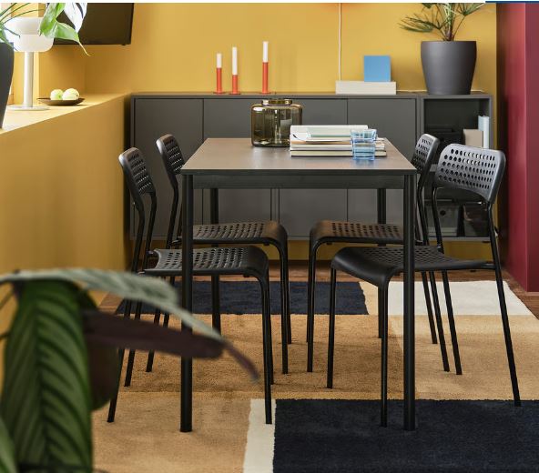 This table for 4 blends a warm wood expression with sturdy metal in a slim design thatâs pleasing to the eye even in smaller spaces.