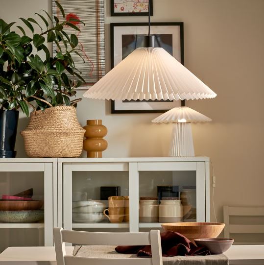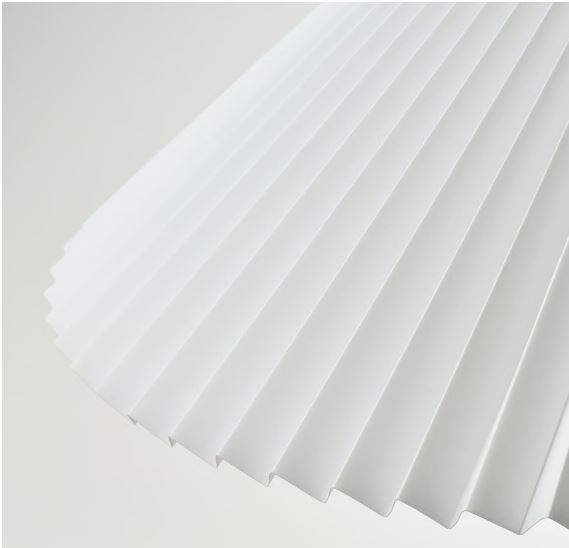 A Scandinavian-styled classic. This pleated shade is just as nice over a dining table as in the living room. Made from durable plastic, of which at least 50% is recycled. Complete with a cord set you like.