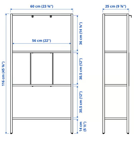 Design with clean lines that matches your existing decor or other items in the BAGGEBO storage series. The neat look, with shelves and a back panel in metal and mesh, makes eye-catchers of what you store.