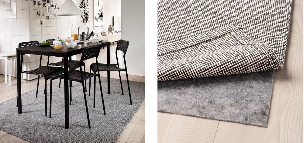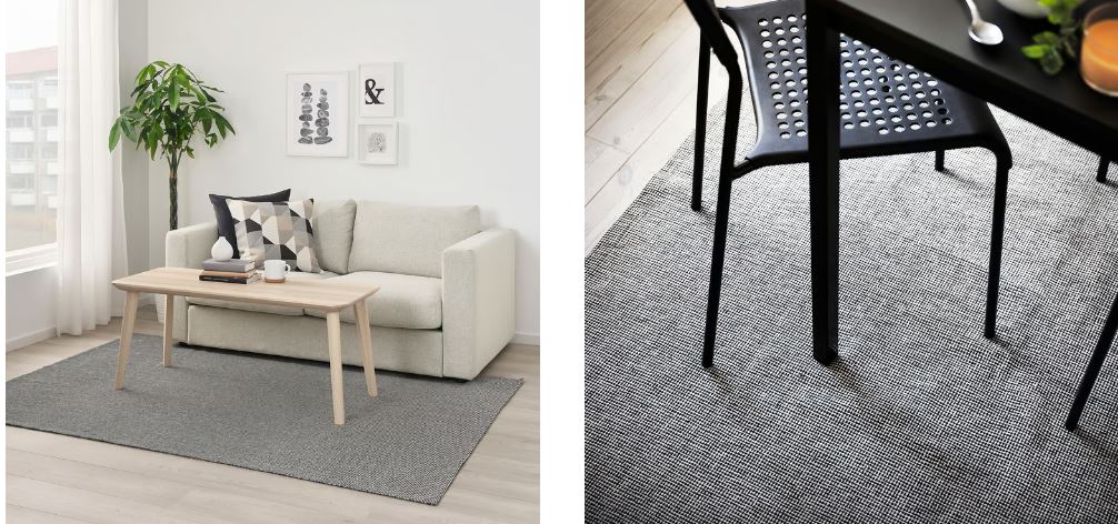 Suitable for use in your living room or underneath your dining table, as the flat-woven surface makes it easy to pull out chairs and clean.