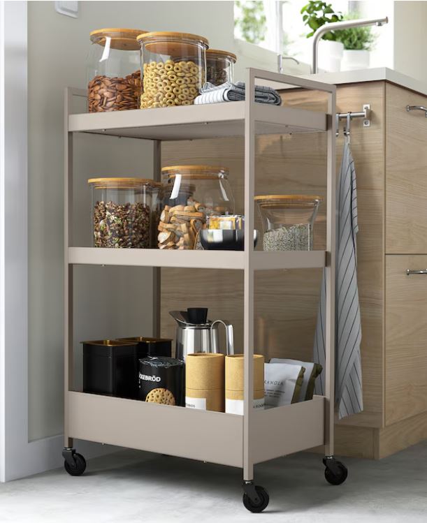 You can use the trolley in different ways, including as an extra work area in the kitchen, as practical storage in the hall or as a different bedside table in your bedroom.