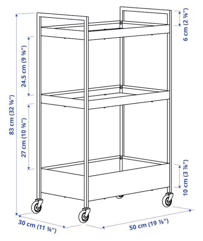 The sturdy construction and four castors make it easy for you to move the trolley and use it wherever you like. It even fits in tight spaces because of its small size.