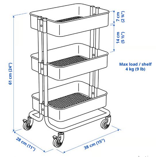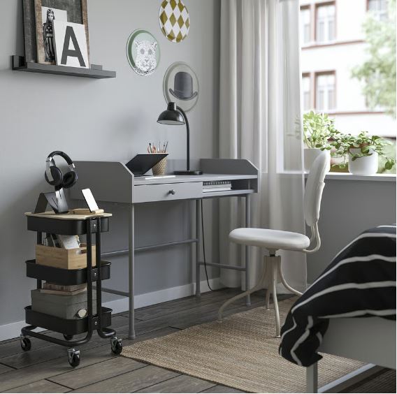 RÅSKOG trolley comes in 2 sizes. This smaller size fits under most tables and desks helping to save on floor space.