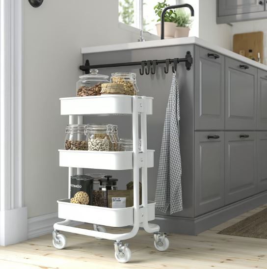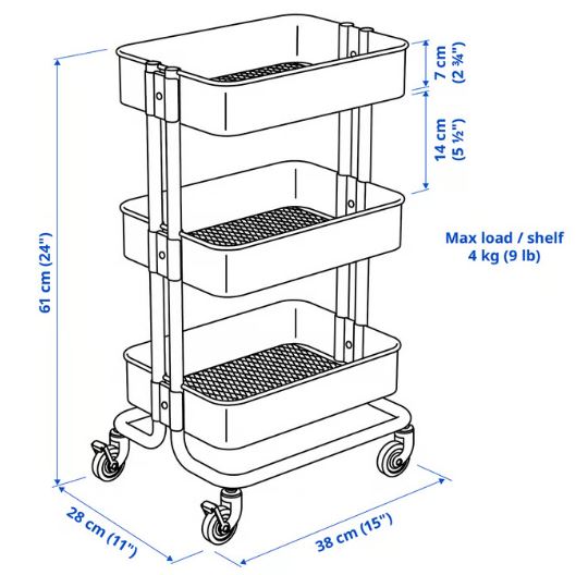 RÅSKOG trolley comes in 2 sizes. This smaller size fits under most tables and desks helping to save on floor space.