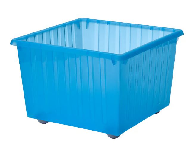 This durable, blue crate with castors is perfect for storing toys, soft toys and books. Simple to lift and carry by grasping the curved top edge – and stackable if you complete with a lid.